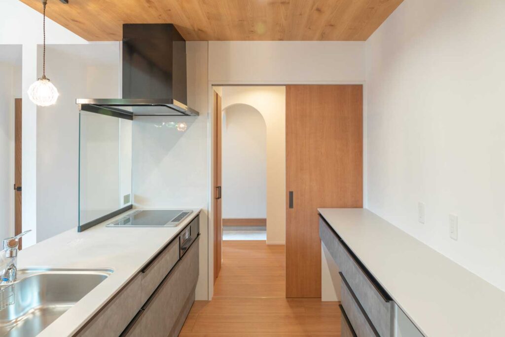 ファミリー玄関からキッチンへ直結する動線で、毎日の暮らしもスムーズに。住まうほどに心地よさを実感できる、工夫が詰まった平屋をぜひご覧ください。シンプルで美しく、機能的なデザインが暮らしに寄り添います。