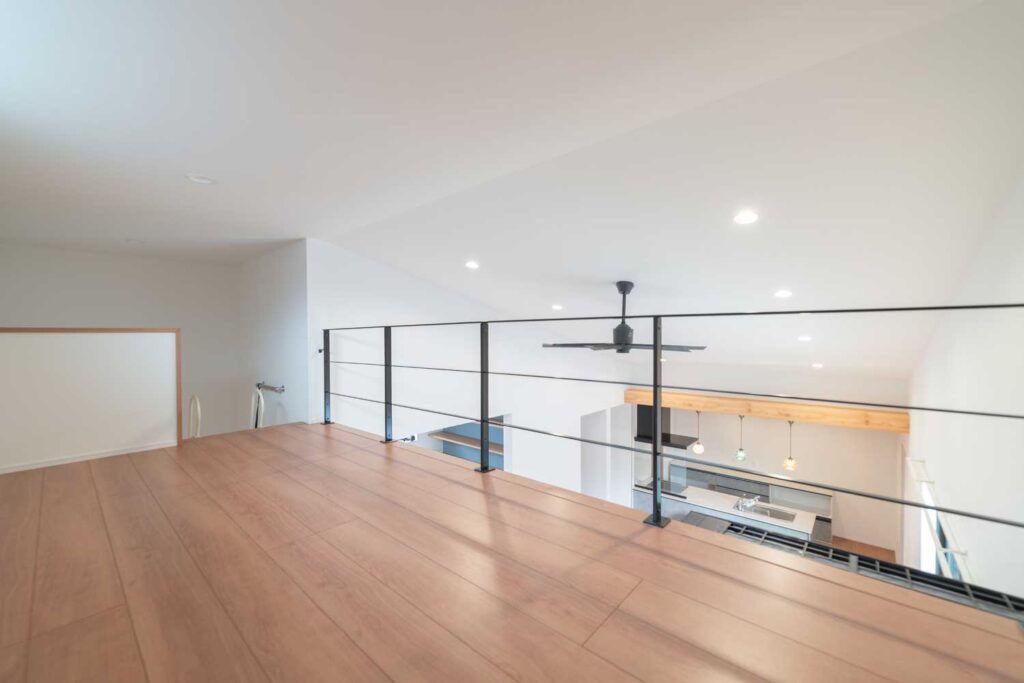 約4帖のロフト。フルオープンなのでリビングと一体感があり広々と感じます。
