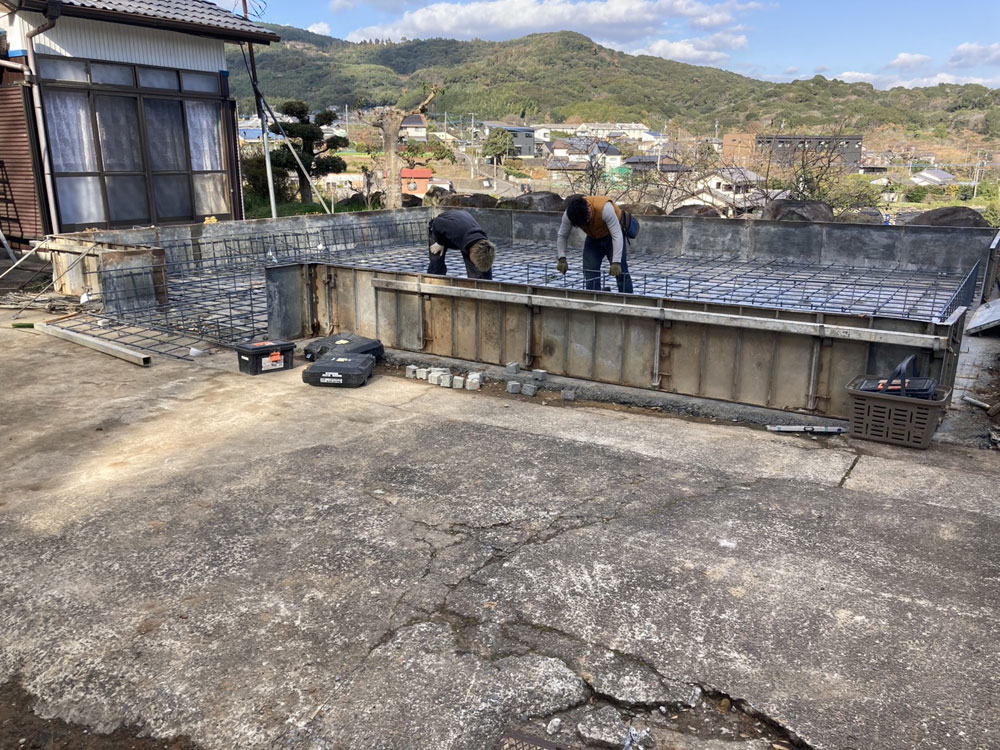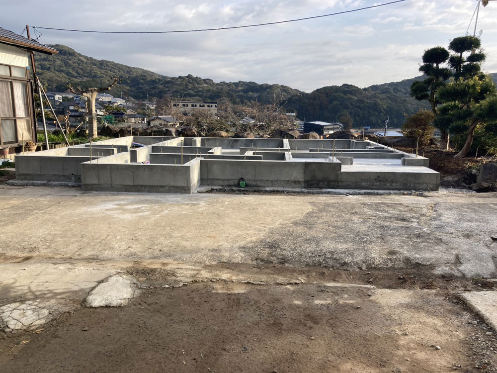 【進行中】大村市今村町T様邸 STEP イメージパース STEP 基礎工事 地盤をならしています。 STEP 基礎工事 コンクリートのひび割れを防ぐための鉄筋を設置します。 STEP 基礎工事 基礎が完成しました。 STEP 大工工事 構造材を一気に立ち上げ、透湿防水シートを貼り終えました。 過去一覧 前の記事 次の記事