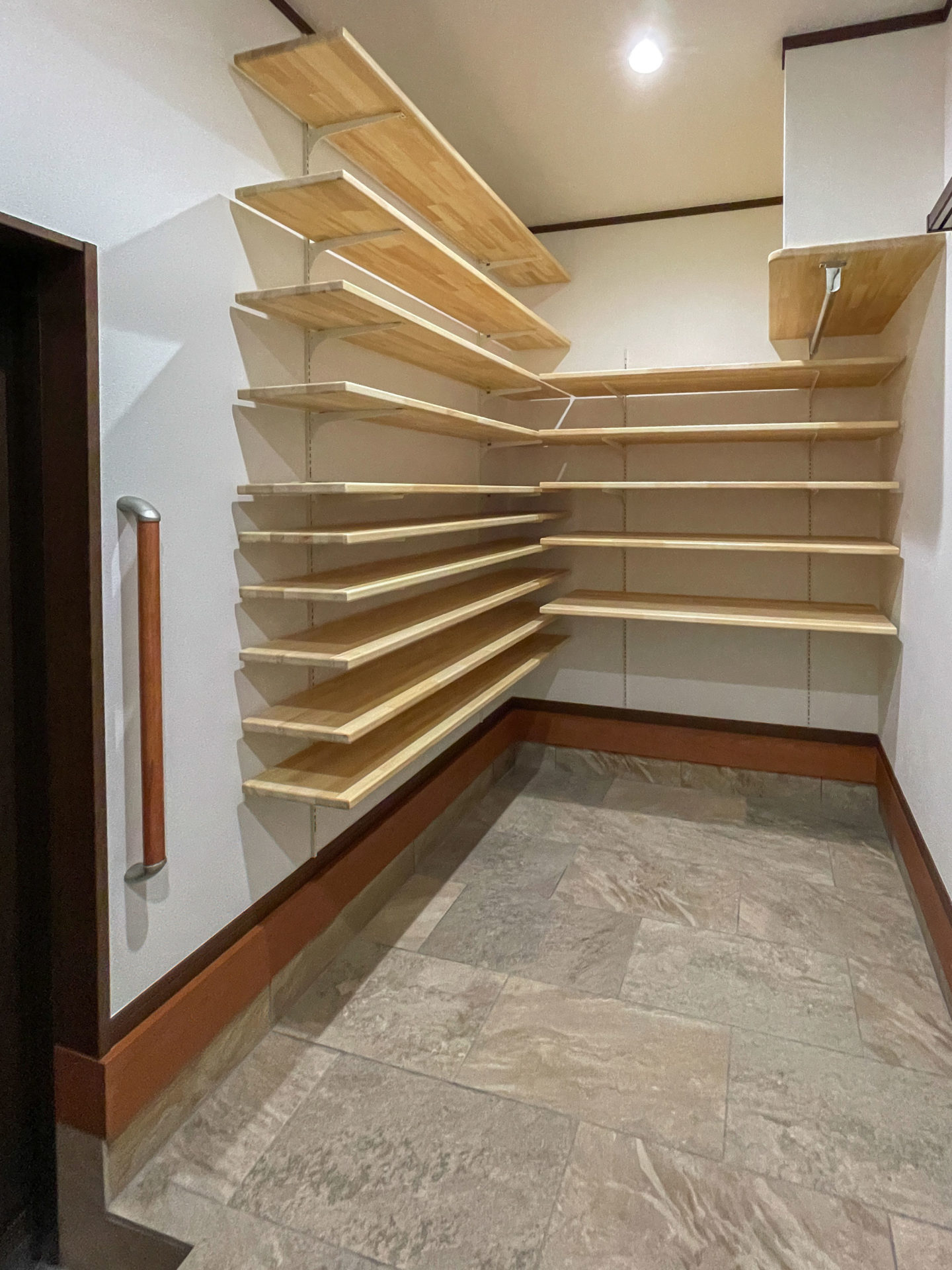 勝手口付近にも納戸を設置しました。可動棚なので用途に合わせて高さを調節できます。