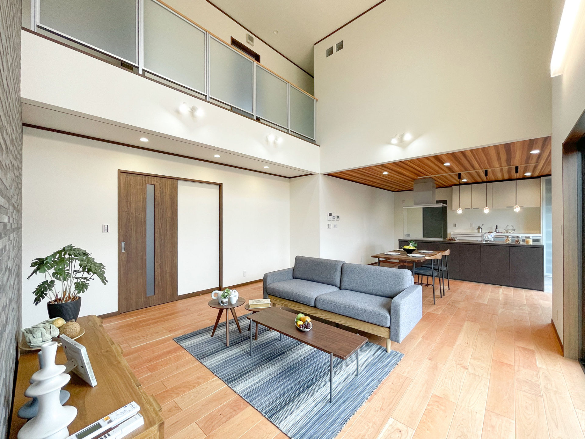 26畳の広々としたLDKは大きな吹き抜けを設けることで、自然光と開放感を満喫できる空間が実現しました。